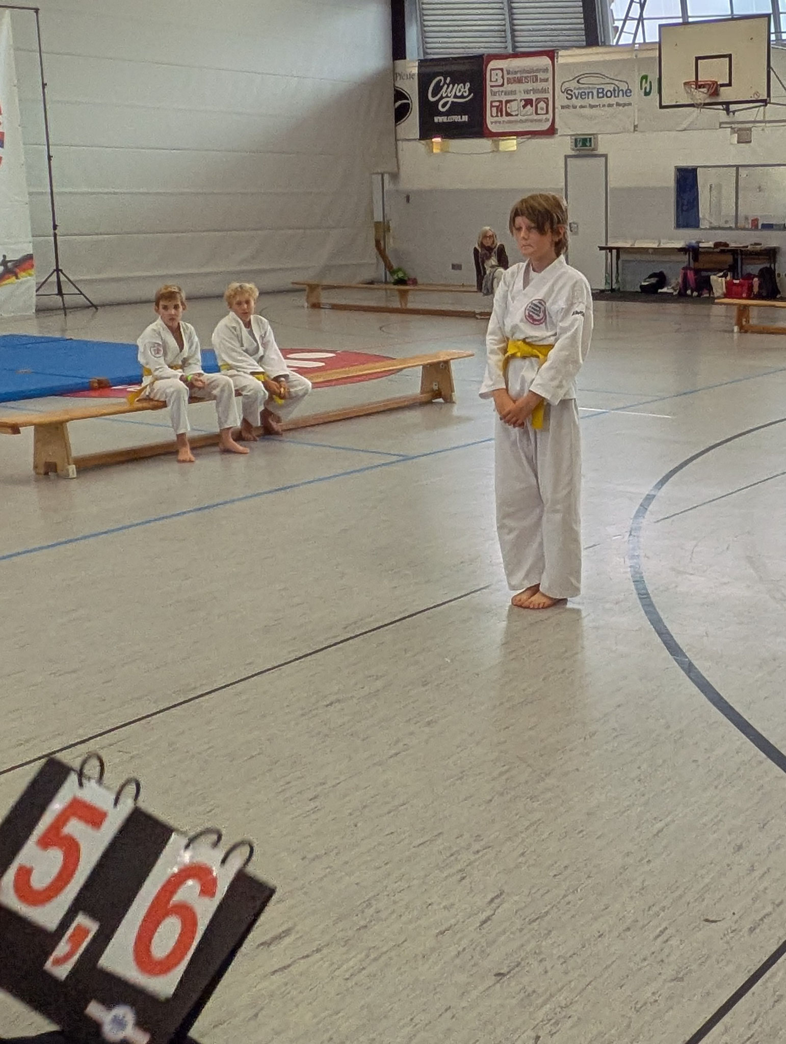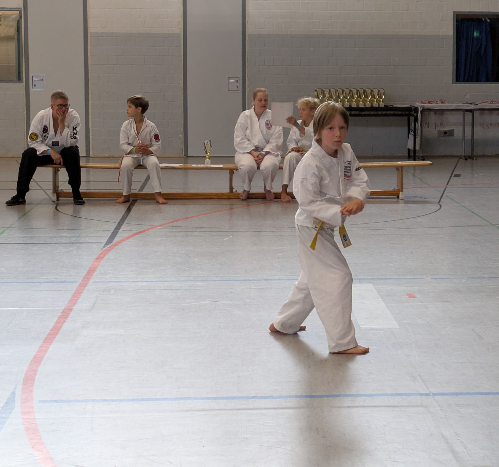 Aller Anfang ist schwer. Die Karatekas des ATSC kämpfen jetzt nicht mehr nur vor sich hin. Mit dem 1. Cux-Cup hat die von Jacqueline "Line" Soyez geführte Abteilung einen ersten Schritt in eine erweiterte Öffentlichkeit gewagt. Alles war bestens vorbereitet in der Rundturnhalle an der Beethovenallee. Getränke, kräftigende und süße Nahrung, Jurytische und Wertungstafeln standen und lagen bereit. Mussten nur noch die Sportlerinnen und Sportler kommen. Es waren ein paar weniger als von "Line" erhofft und erwartet. Aber davon ließen die "Vorkämpferin" und die herbeigeeilten Sportlerinnen und Sportler in den typischen weißen oder schwarzen Karategi (das ist die Kampfbekleidung) nicht entmutigen.