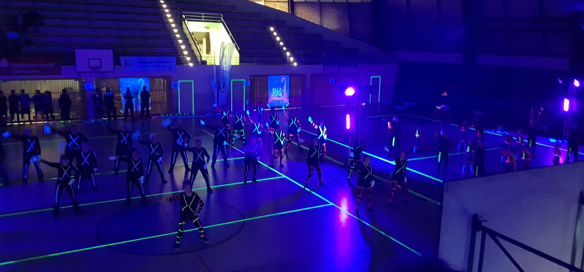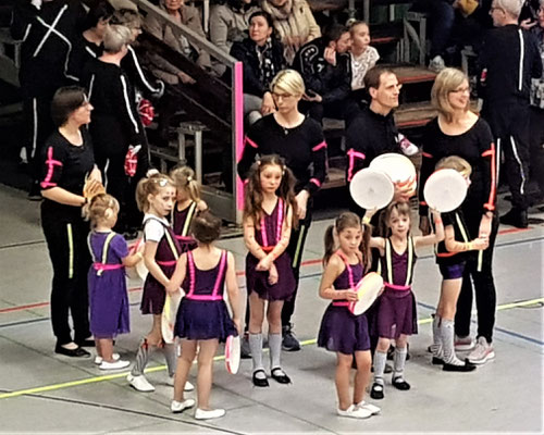 Auch Sabine Lenz-Breuer war mit einem großen Aufgebot von Tänzern und Tänzerinnen jeglicher Altersklasse mit von der Partie und eröffnete die Veranstaltung mit einer tollen Choreografie und vor allem extra angeschafften Kostümen, die bei Schwarzlicht erst richtig Eindruck machten.