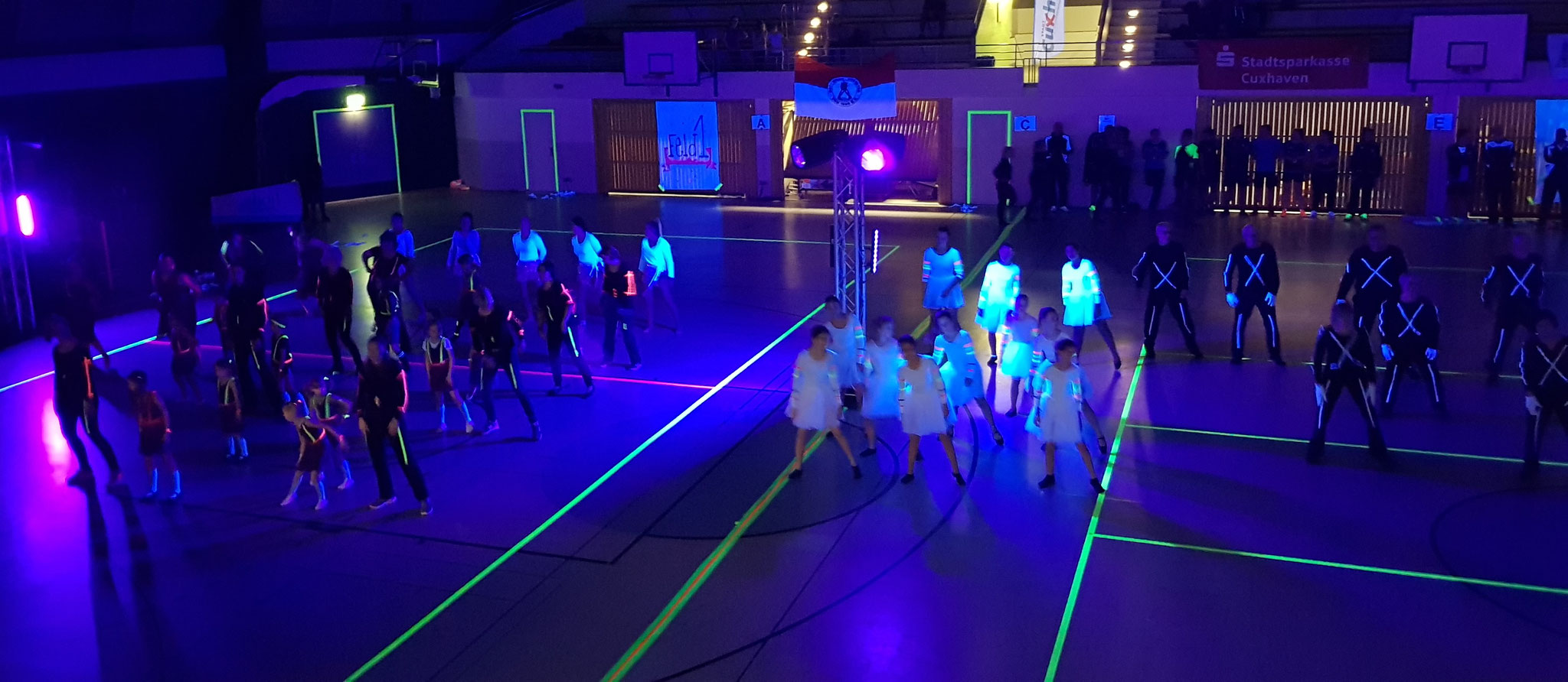 Nach vielen Monaten der Vorbereitung fand endlich einmal wieder eine "Nacht des Sports" in der Cuxhavener Rundturnhalle statt. Mirco Finck, Sportreferent der Stadt Cuxhaven, holte mehrere Vereine mit ins Boot und so war die Turnhalle am Abend des 15.2.2019 zeitweise völlig in Schwarzlicht getaucht.