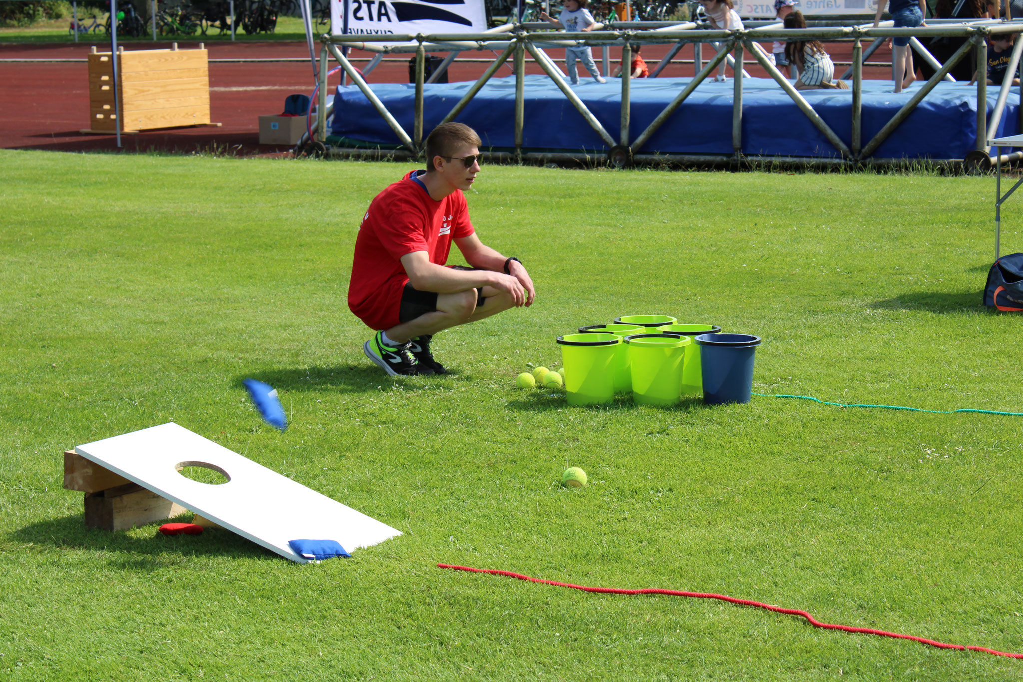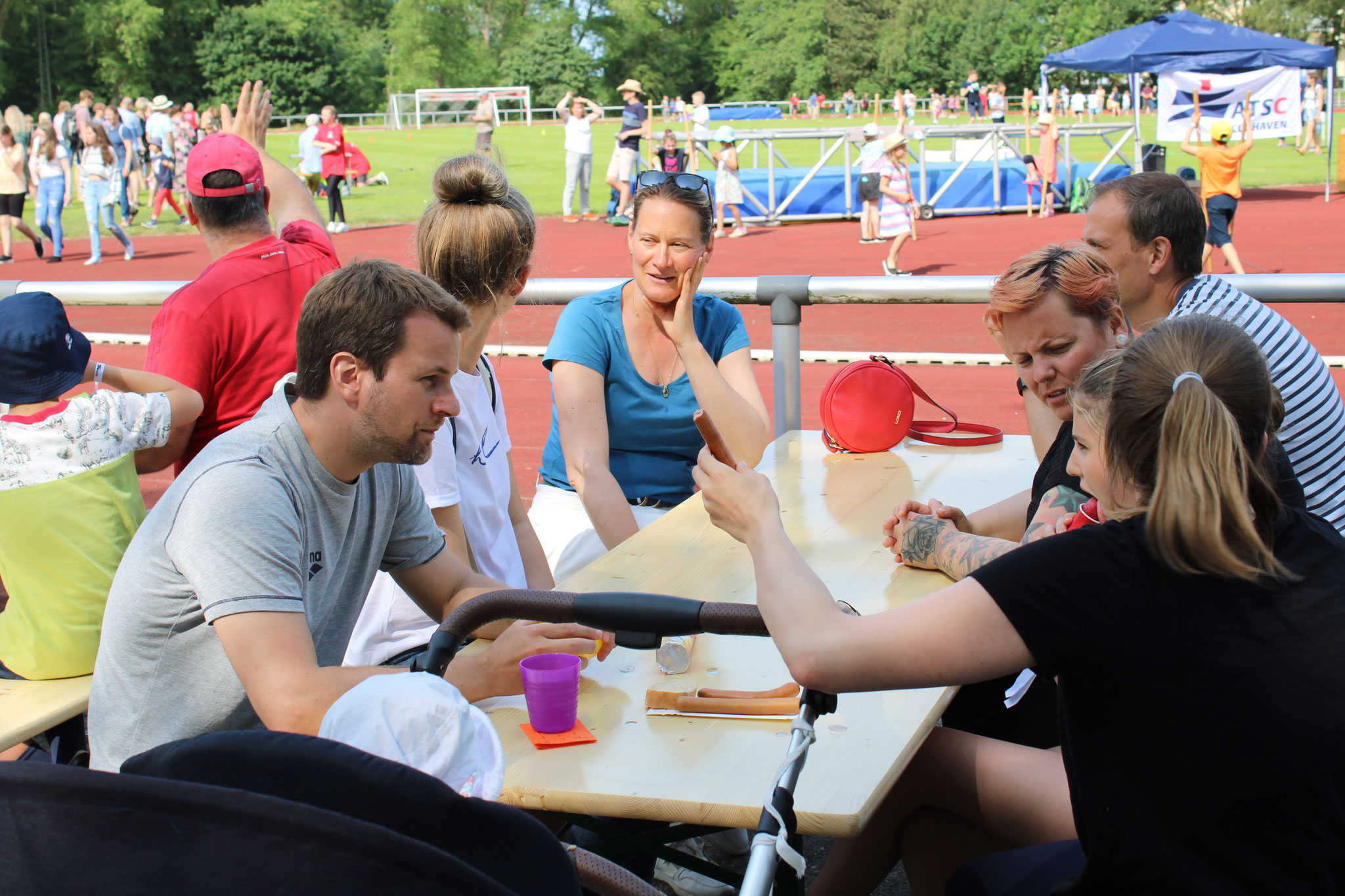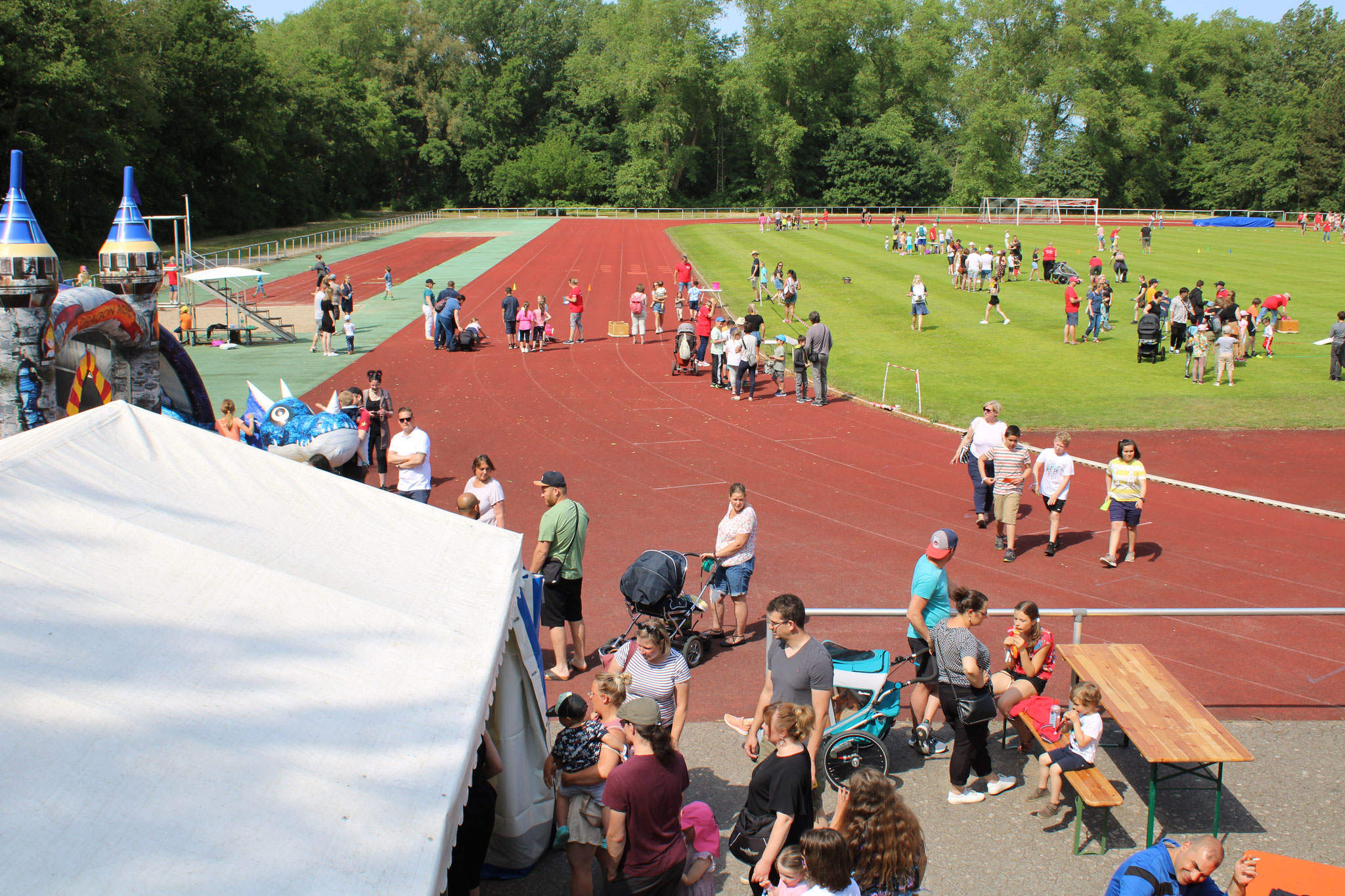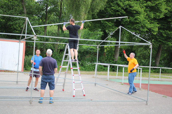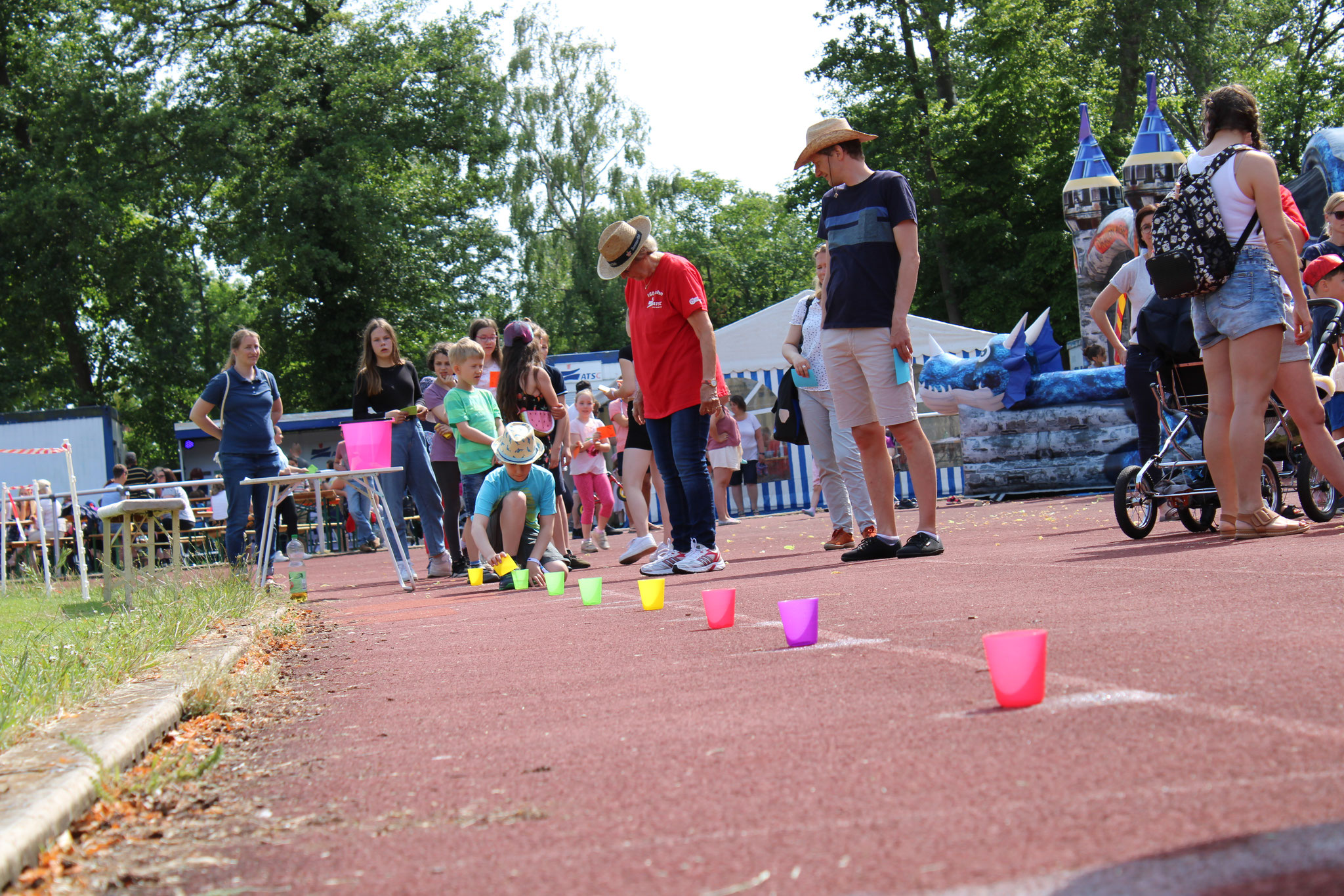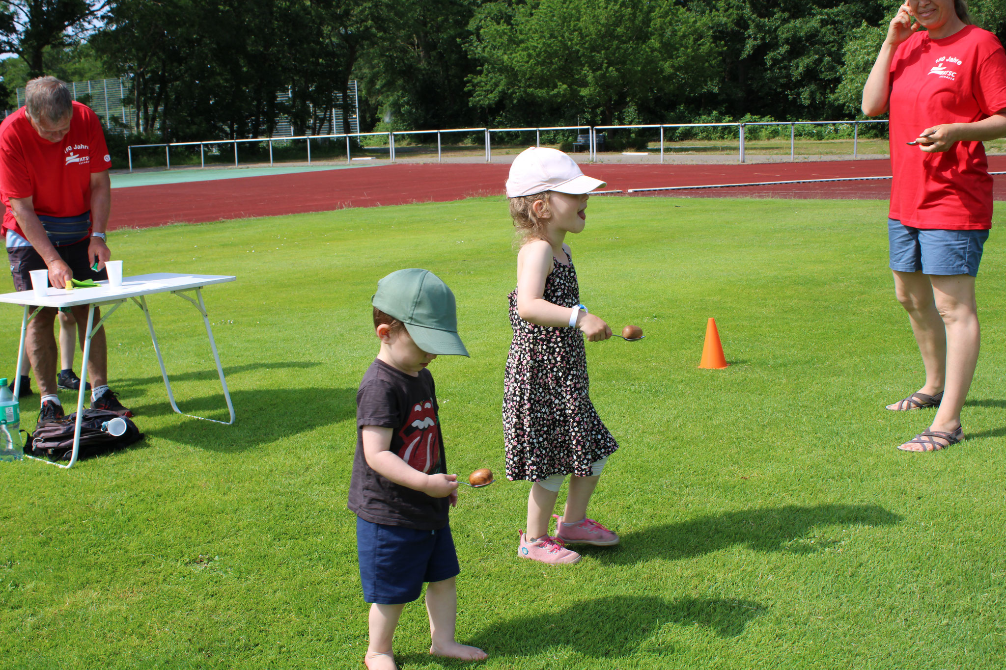 Am 18. Juni fand auf dem Strichwegsportplatz bei herrlichem Wetter zunächst nachmittags ein Kinderspielfest statt. Die Kinder bekamen gleich zu Anfang Stempelkarten mit Gutscheinen für Würstchen, Getränke und Eis und den Spaßparcours: 12 Stationen - teils sportlich, aber vor allem spaßig und für jede Altersgruppe - luden zum Toben und Kräftemessen ein.