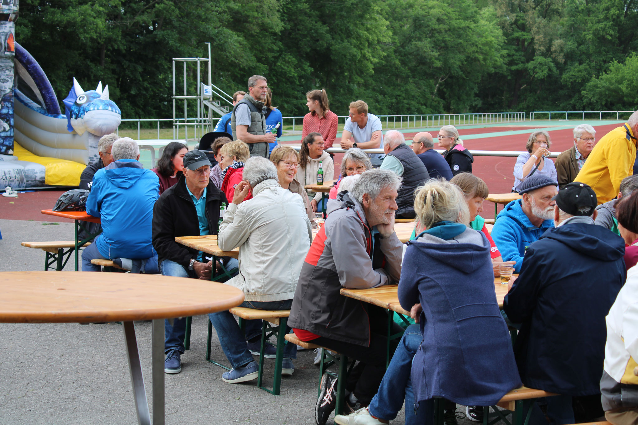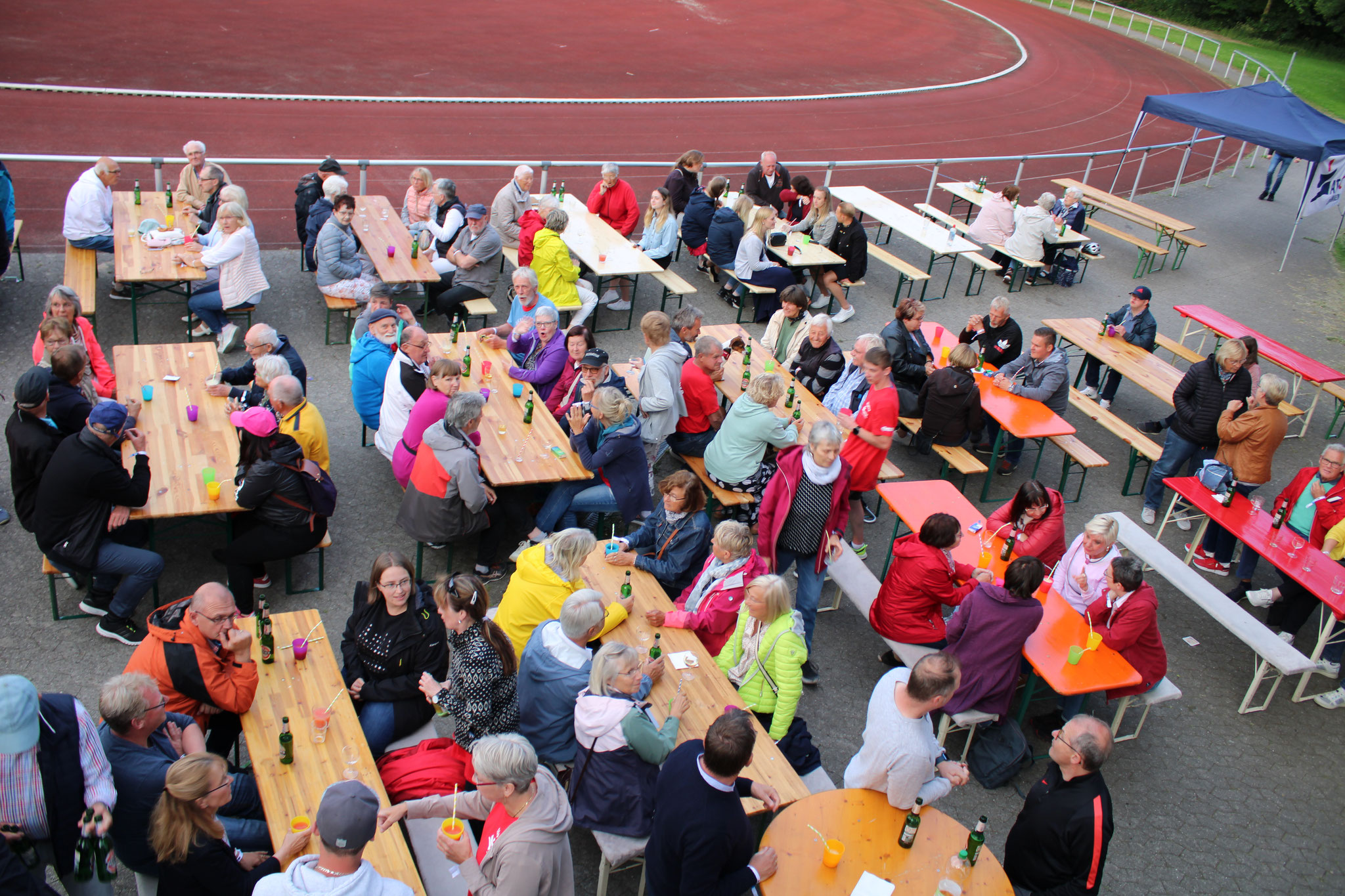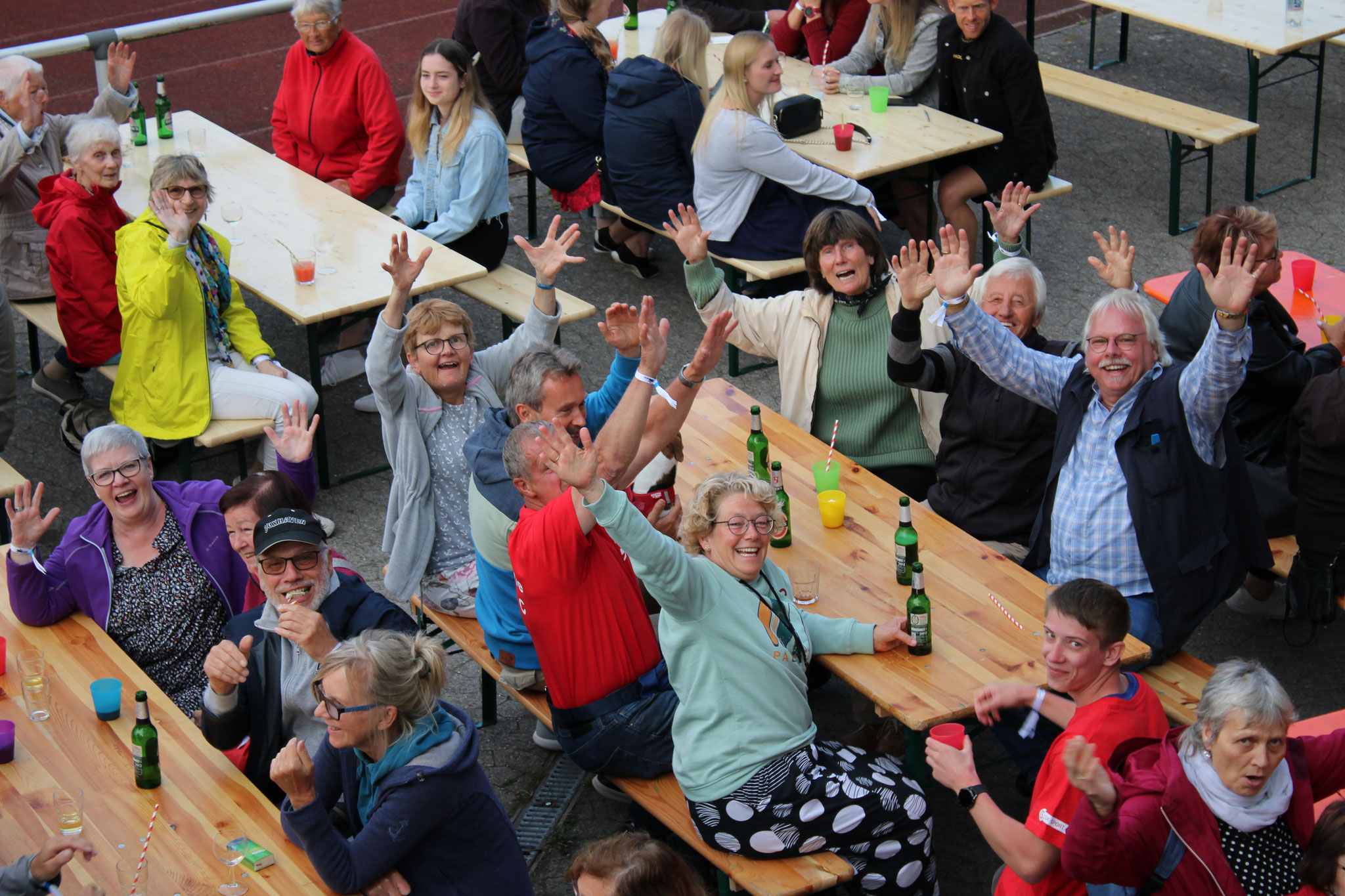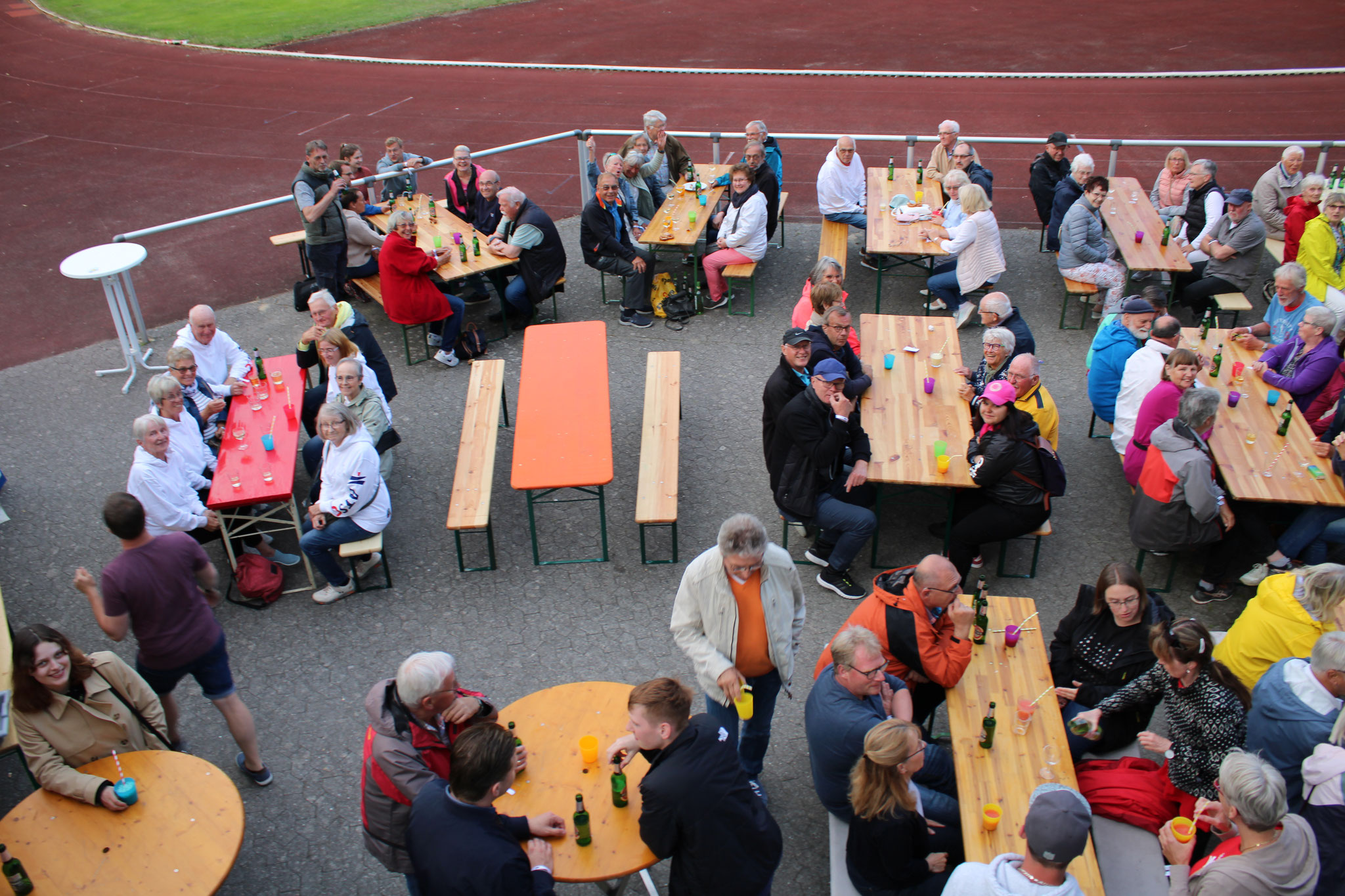 Am Abend gehörte der Strichweg-sportplatz dann den Erwachsenen: Ca. 190 Personen feierten ausgelassen bei leckerem Krustenbraten und Beilagen sowie Cocktails und diversen anderen Getränken bis in den späten Abend hinein.